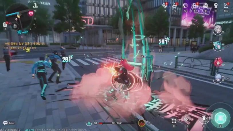 그리고 1차 CBT부터 이환 특유의 시스템인 '에스퍼 사이클'도 한층 더 완성도를 높였습니다. '에스퍼 사이클'은 6개 속성(빛, 령, 주, 암, 혼, 상)이 마치 헌터X헌터의 넨 계통처럼 배치되어있고, 서로 인접한 속성끼리는 연계가 일어나는 규칙이죠. 빛 속성과 령 속성이 반응해서 주기적으로 적에게 피해를 주는 이능력 꽃을 형성하는 '블라썸' 효과부터 시작해 각 인접 속성 연계에 따라서 전투를 다른 식으로 이끌어가는 식입니다. 그 속성 연계를 발생시킬 태그기도 각 캐릭터의 에스퍼 사이클 수치로 바로 확인할 수 있고, 그로기나 반격기 그리고 패링까지도 시그널이 확실하게 뜨죠.